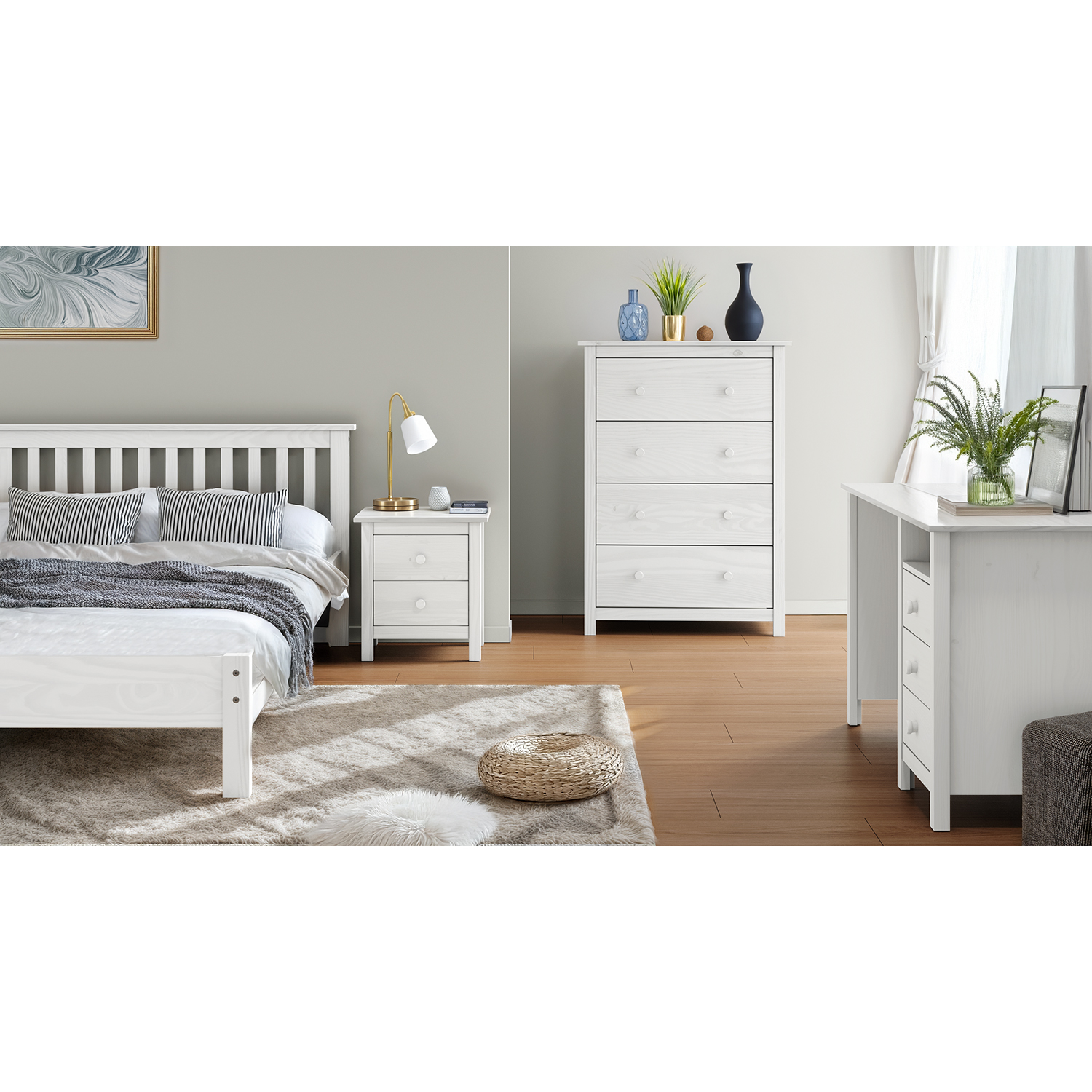 Kod produktu: 9133Bmateriał lite drewno sosnowe, kolor biały lakier cztery szuflady z metalowymi prowadnicami