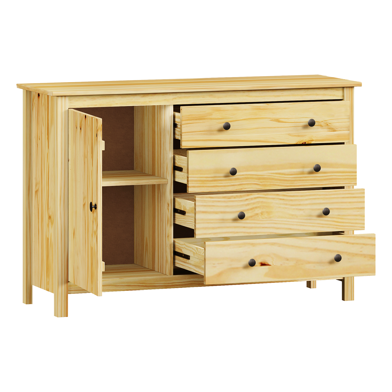 Kod produktu: 68062Kmateriał lite drewno sosnowe, lakierowane wykończenie metalowe uchwyty 4 szuflady z metalowymi prowadnicami, 2 pełne drzwi, 1 półka