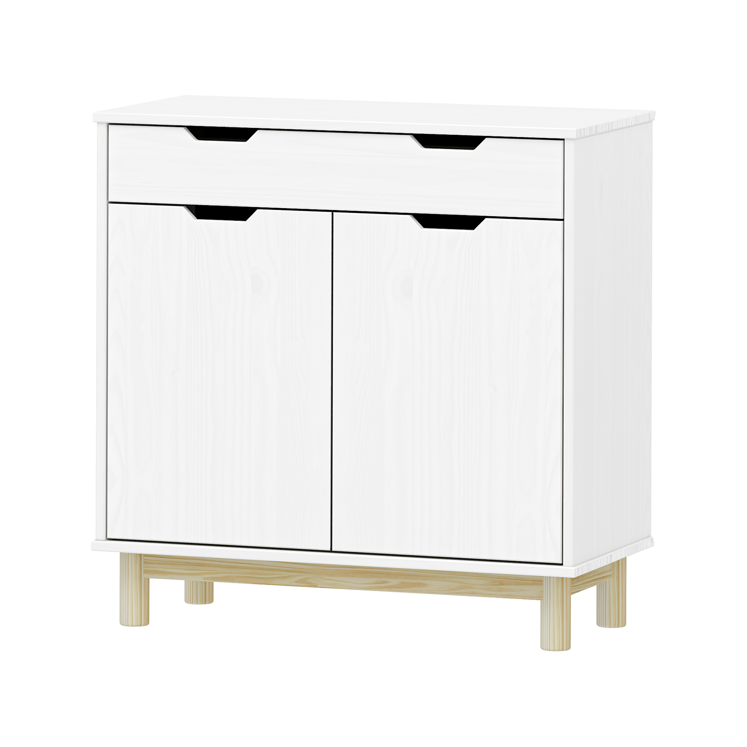 Kod produktu: 324291Vmateriał lita sosna, lakierowane wykończenie3 szuflady z metalowymi prowadnicami, 2 drzwi, 1 półka