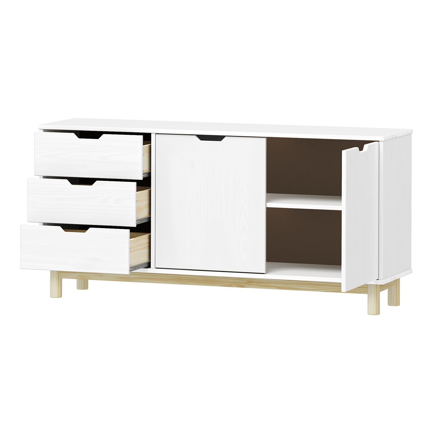 Kod produktu: 324291Vmateriał lita sosna, lakierowane wykończenie3 szuflady z metalowymi prowadnicami, 2 drzwi, 1 półka