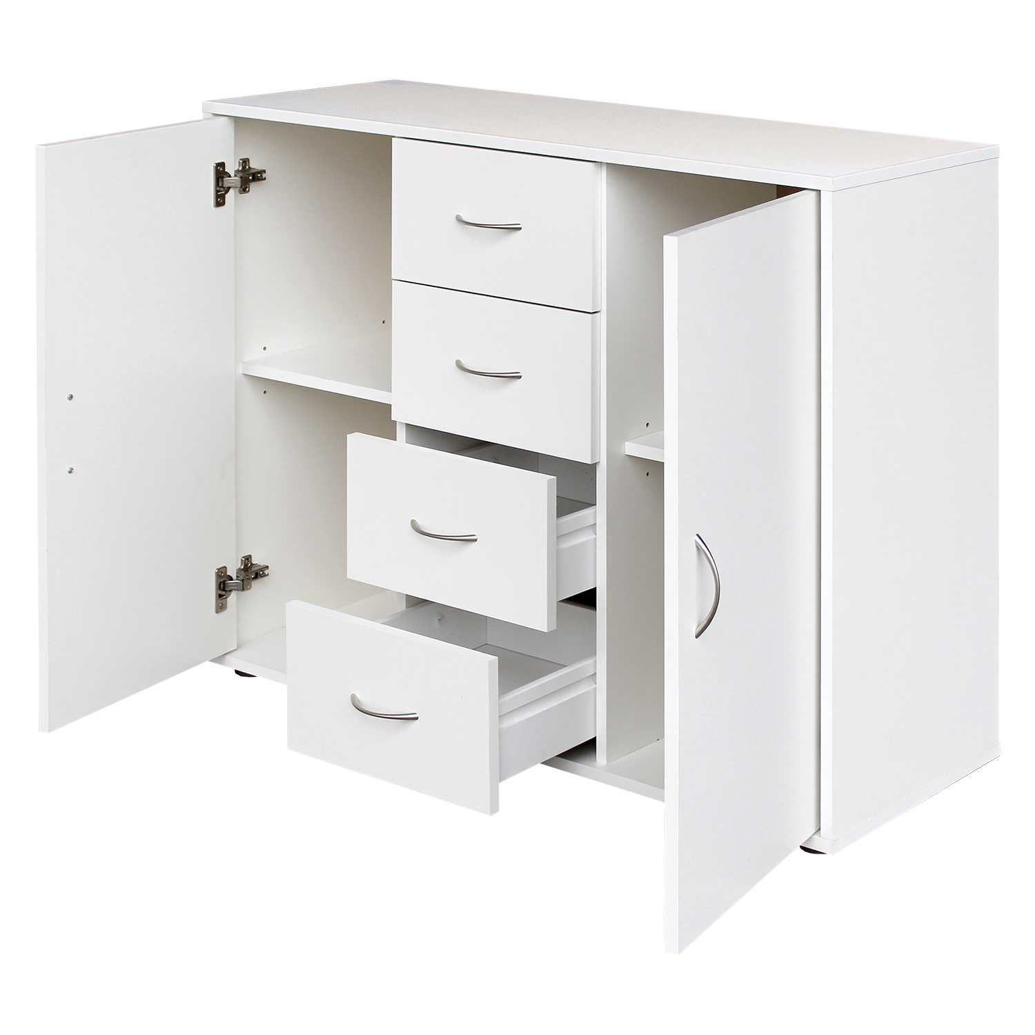 Jeśli cenisz sobie, aby otoczenie, w którym żyjesz było nie tylko praktyczne i uporządkowane, ale także świadczyło o Twoim dobrym guście, to piękne meble są dla Ciebie priorytetem. Komoda 2 drzwi + 4 szuflady w kolorze białym będzie doskonale prezentować się zarówno w salonie, jak i sypialni. W każdym pomieszczeniu będzie w centrum uwagi, ponieważ na tej pięknej komodzie można wyeksponować wszelkiego rodzaju dekoracje, zdjęcia i pamiątki. Komoda, podobnie jak toaletka, służy nie tylko do przechowywania rzeczy, ale także do ich odpowiedniej prezentacji. Nowoczesna komoda zawiera cztery szuflady w środku i dwa schowki z drzwiczkami, w których znajdują się półki. W sypialni może pomieścić pościel, a w salonie posłuży jako poręczna komoda do przechowywania książek i różnych dokumentów. Niezależnie od tego, jakie miejsce wybierzesz na komodę, pokój urządzony białymi meblami zawsze będzie wyglądał przestronnie i świeżo. W końcu białe meble są niezwykle stylowe.