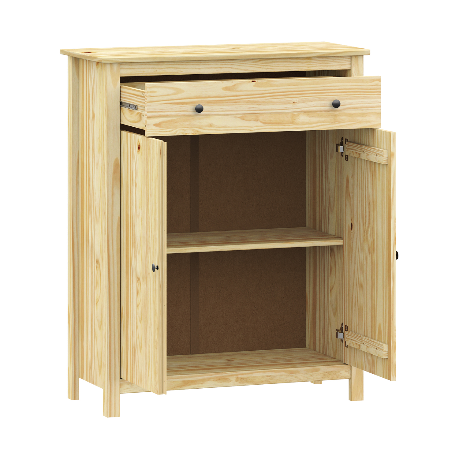 Kod produktu: 8079Kmateriał lite drewno sosnowe, lakierowane wykończenie metalowe uchwyty 2 drzwi i 2 szuflady z metalowymi prowadnicami