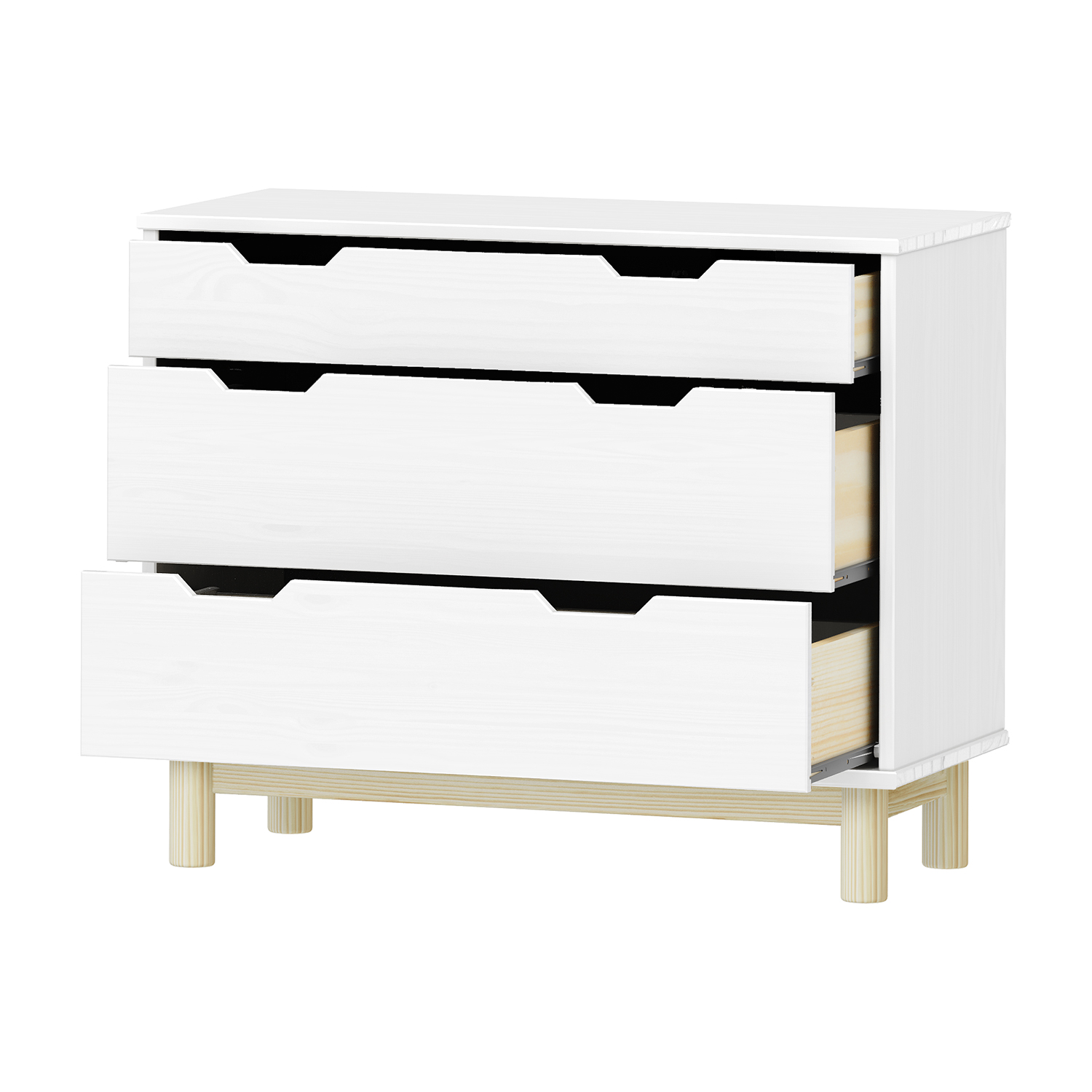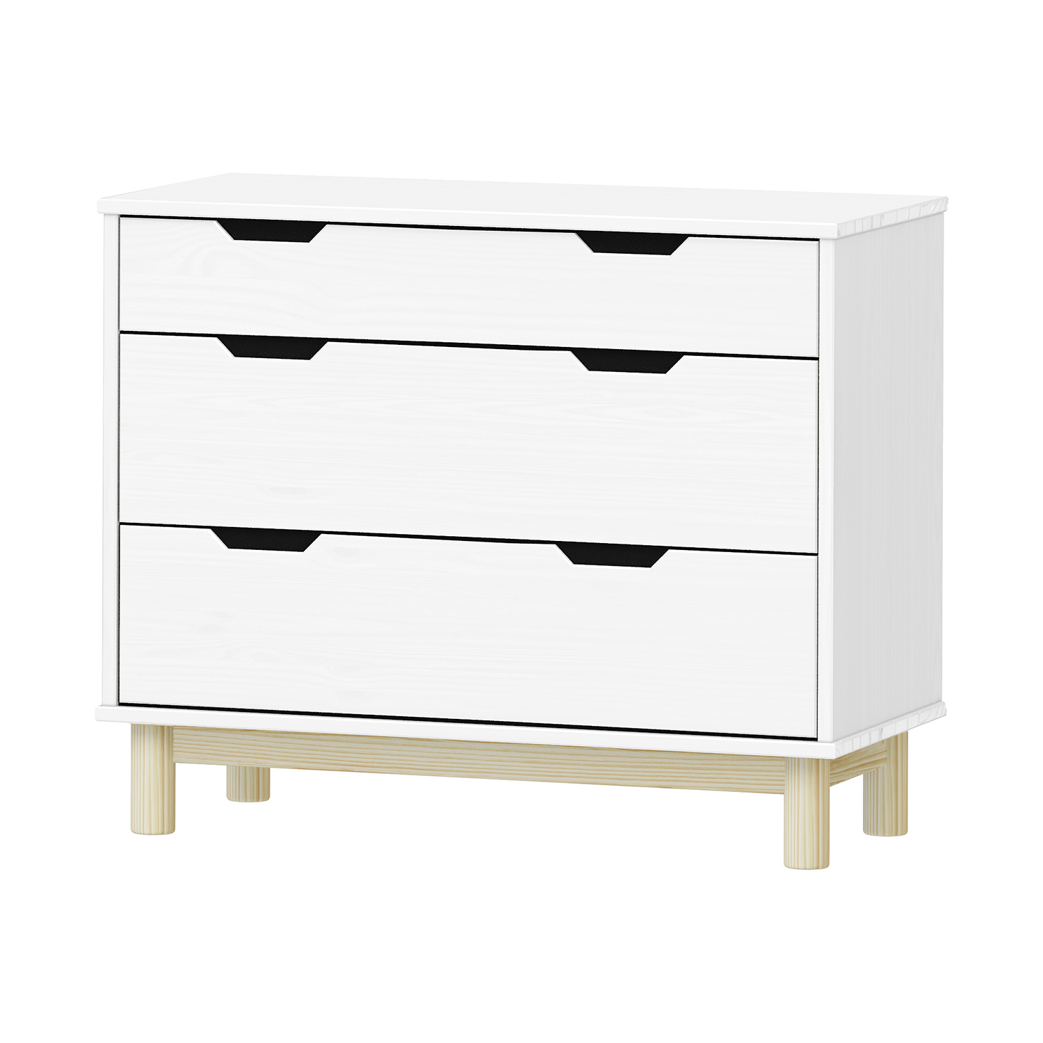 Kod produktu: 324261Vmateriał lita sosna, lakierowane wykończenie1 mniejsza i 2 większe szuflady z metalowymi prowadnicami