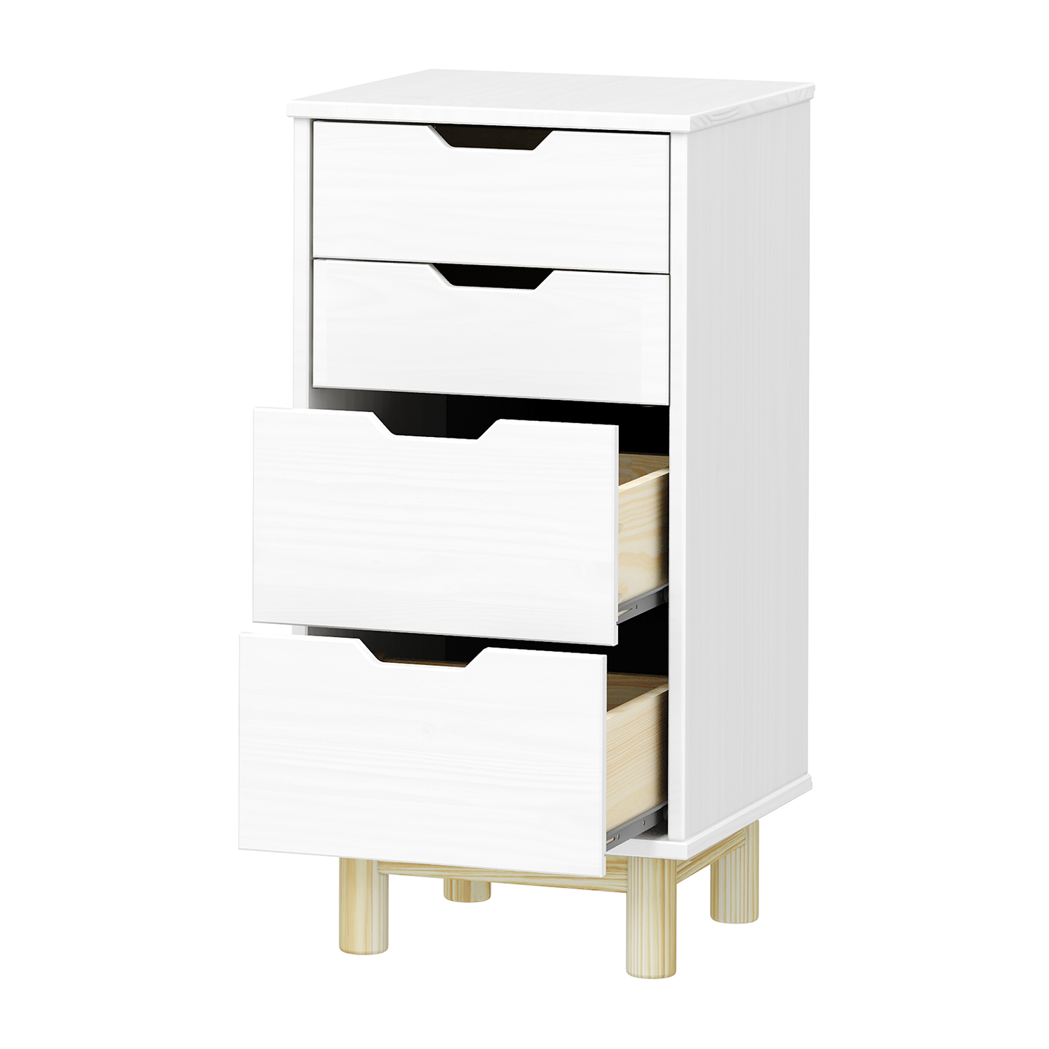 2 mniejsze i 2 większe szuflady z metalowymi prowadnicami