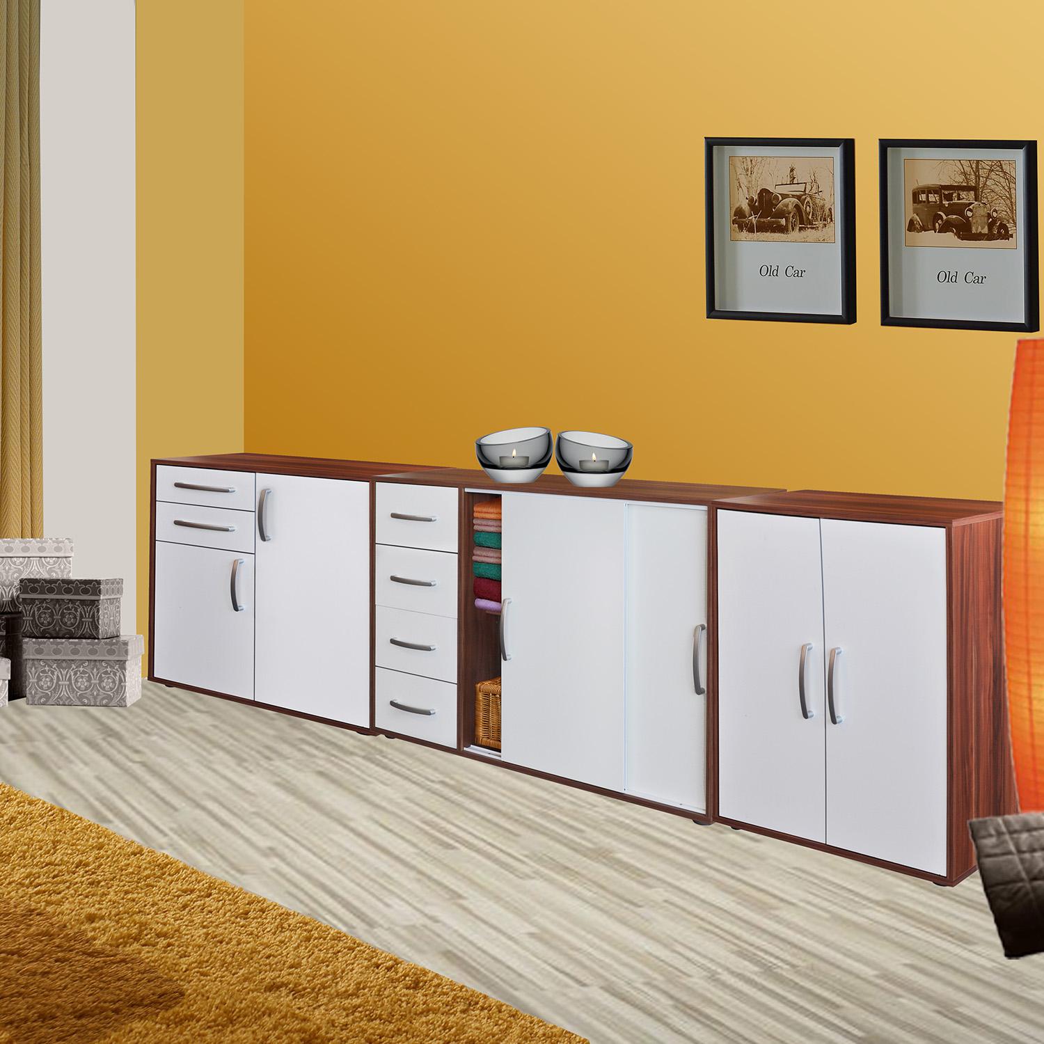 Komoda 61502 w kolorze orzech/biały to klasyczny mebel, którego nie powinno zabraknąć w sypialni wyposażonej w meble w tej samej kolorystyce. Komoda posiada cztery szerokie szuflady, które pomieszczą ubrania, pościel i koce. Poręczna komoda z szufladami przyda się tuż obok przewijaka, układając pieluszki, dziecięce kosmetyki, śpioszki i zabawki. Komodę można postawić osobno, lub wkomponować w cały zestaw komód i toaletek, taki komplet będzie się wtedy naprawdę dobrze prezentował nie tylko w sypialni, ale także w salonie czy garderobie. Zastąp wysokie szafki niskimi komodami i toaletkami, przestrzeń będzie wyglądała na bardziej przestronną, a dodatkowo możesz bawić się dekoracjami, które umieścisz na wolnej powierzchni komody. Komoda 61502 zaoszczędzi ci wiele pracy z nieporęcznym praniem, a jednocześnie pięknie udekoruje pomieszczenie.