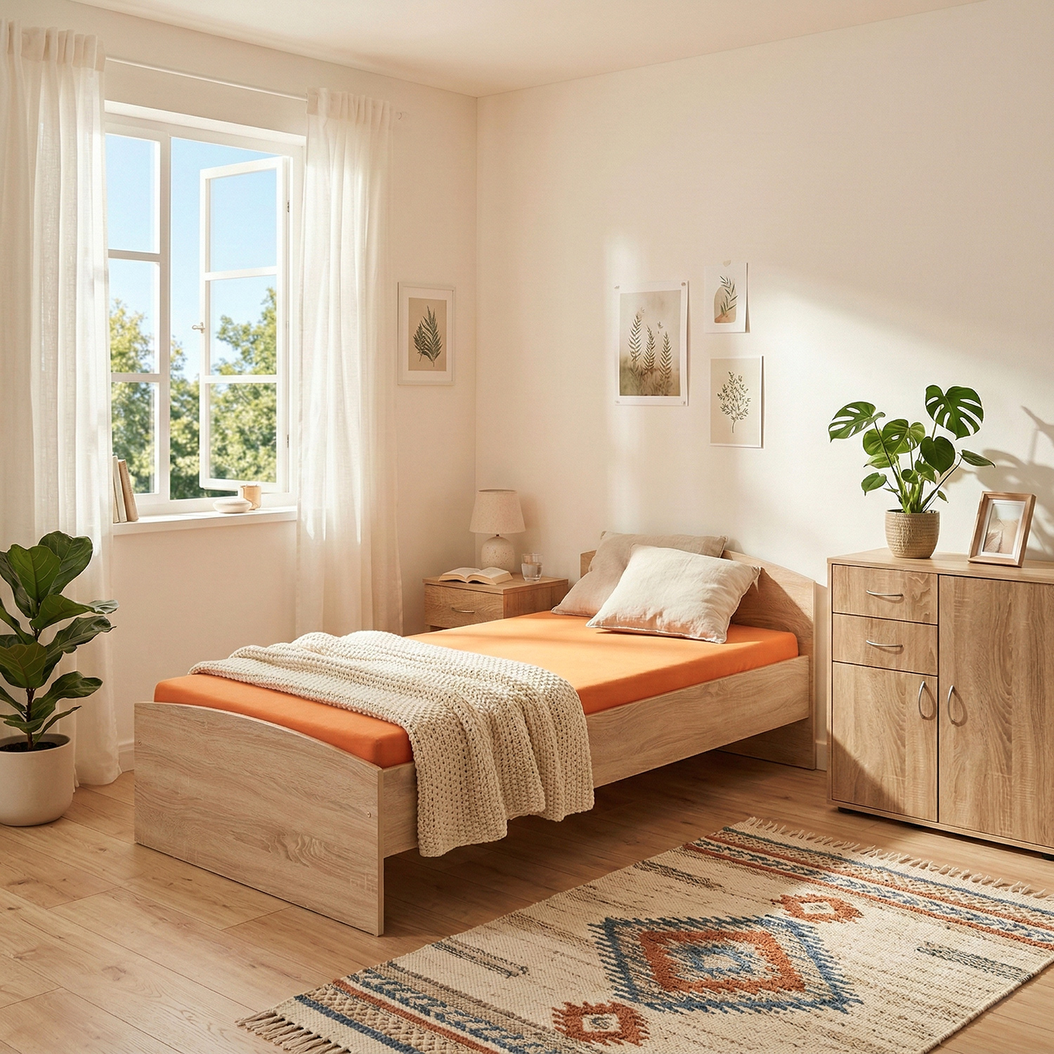 Wybór ładnego i praktycznego łóżka do pokoju dziecięcego, które nie naruszy napiętego budżetu rodzinnego może wydawać się niemożliwy. Jednak pojedyncze łóżko 50343 w kolorze dębu Sonoma to mebel, który spełni wszystkie Twoje oczekiwania, nie wydając przy tym zbyt wiele. Proste łóżko z lekko zakrzywionym zagłówkiem i solidną konstrukcją będzie idealnie pasować do twoich dzieci. Dodatkowo łóżko pojedyncze można uzupełnić o praktyczny schowek 147A. Łóżko będzie przyjemne do odpoczynku i snu, wystarczy zaopatrzyć je w odpowiedni materac i pościel z wesołym nadrukiem lub obrazkiem popularnej postaci z kreskówki, a będziesz najlepszą mamą na świecie. Na ładnym łóżku można poczytać dzieciom ulubioną bajkę lub porozmawiać o planach na przyszłość. Solidne łóżko posłuży im przez całe dzieciństwo i okres dojrzewania, a także będzie im dobrze służyć, gdy dorosłe dziecko będzie je od czasu do czasu odwiedzać. Wygodne łóżko zawsze będzie na nie czekać w domu, tak jak dumna mama.