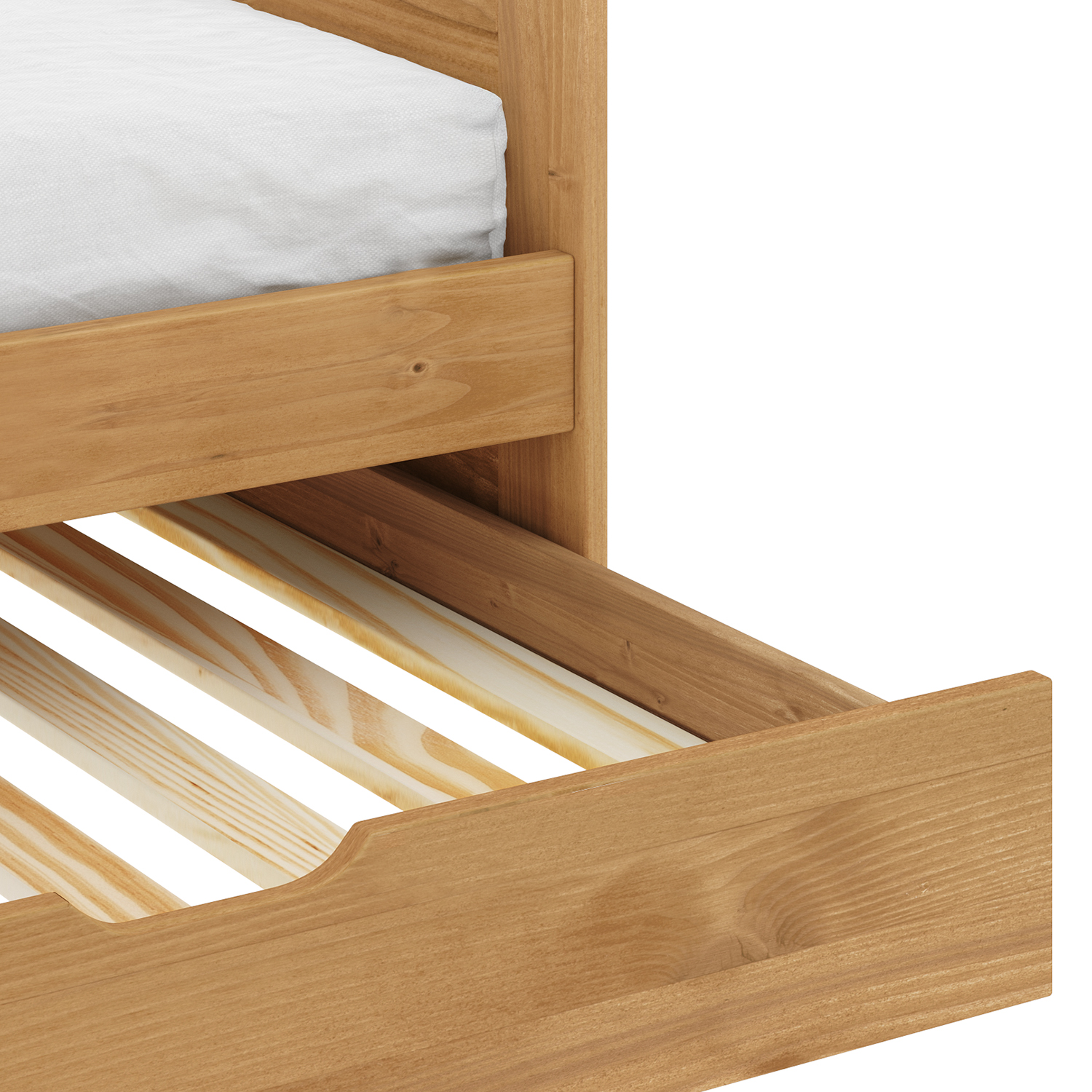 Kod produktu: 8863Vmateriał lite drewno sosnowe, wykończenie woskowane praktyczne schowki pod łóżkiem (3 szuflady) w zestawie cena obejmuje ruszt (listwy drewniane), materac nie jest wliczony w cenę zalecany rozmiar materaca 90 × 200 cm (M2, M5, M9, M12, M24, M26) szuflada może być używana jako schowek lub jako dodatkowe łóżko zalecana wysokość materaca dla dodatkowego łóżka 10 cm