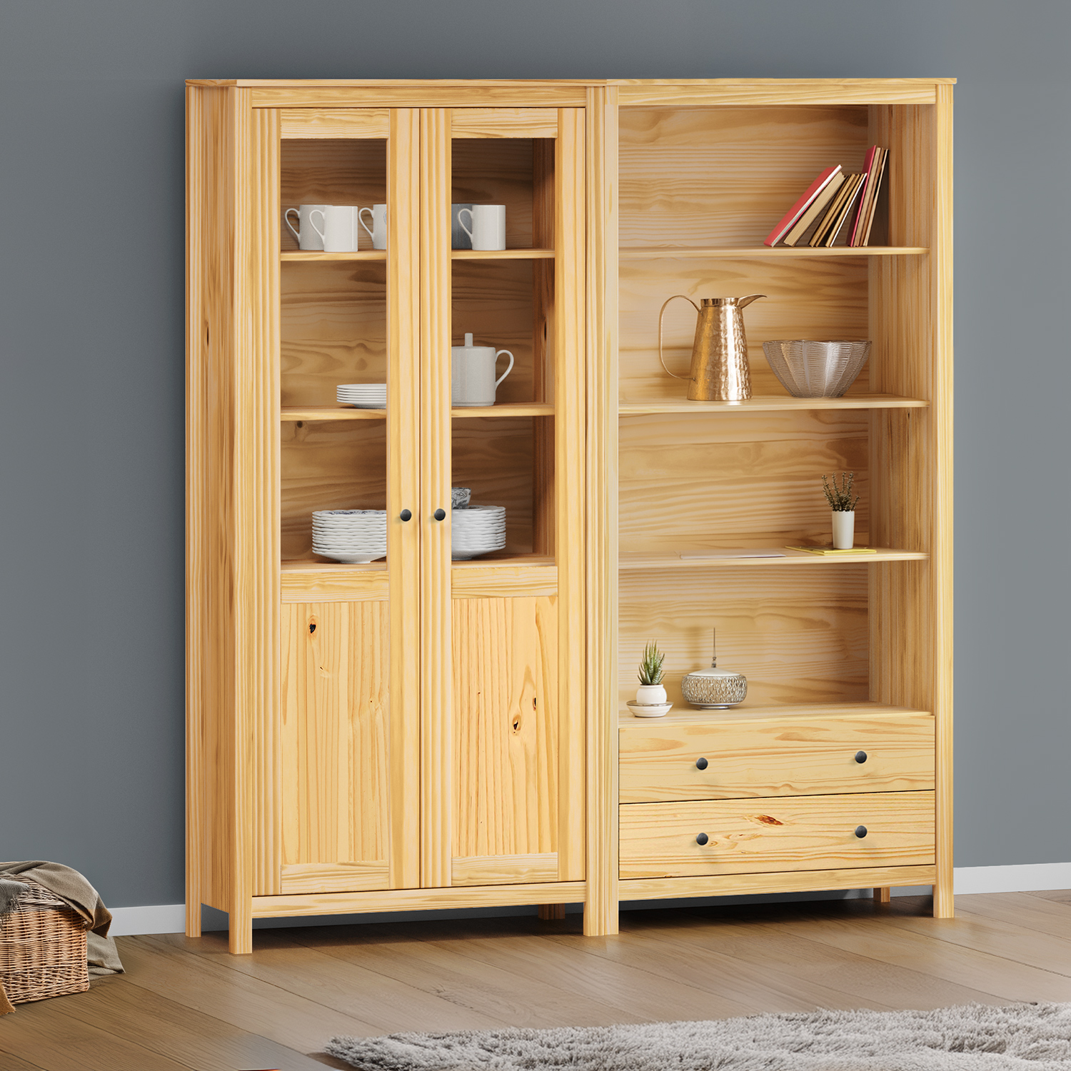 Kod produktu: 8062Kmateriał lita sosna, lakierowane wykończenie metalowe uchwyty dwoje szklanych drzwi uzupełnienie kredensu TORINO 8062K