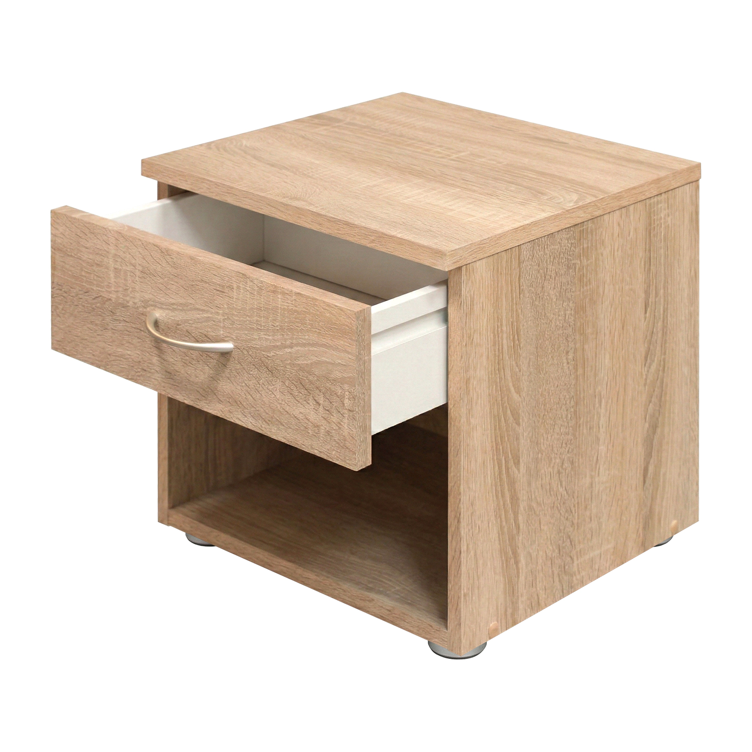 Wciąż wahasz się, czy obok łóżka w identycznej kolorystyce postawić szafkę nocną 50140 w kolorze dąb sonoma? Łóżko bez szafki nocnej jest jak samochód bez bagażnika - funkcjonalne i wygodne, ale nie w pełni i praktycznie wykorzystane. Wyposaż swój pokój również w piękne drobne meble i relaksuj się przy poręcznym pomocniku.