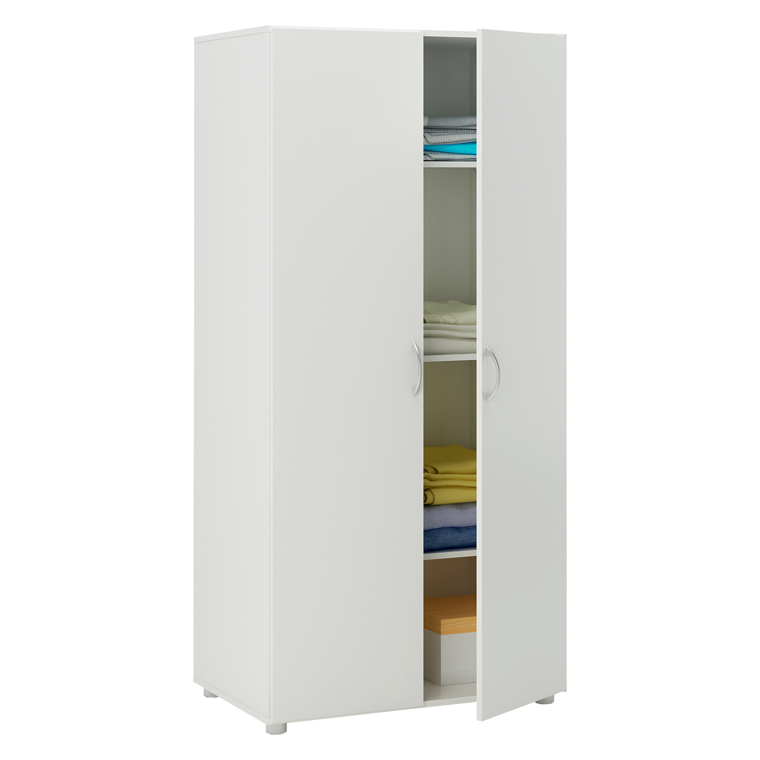 Dwudrzwiowa szafa z półkami BEST w kolorze białym zawiera trzy półki, dzięki czemu możesz przechowywać wszystkie swoje rzeczy w uporządkowany sposób. Dwudrzwiowa szafa pasuje również do mniejszych pomieszczeń, ponieważ można ją umieścić osobno, ale będzie również bardzo dobrze współpracować z innymi szafami BEST w tej samej kolorystyce. Białe szafy BEST można również wykorzystać w przestronnej garderobie. Praktyczna szafa z półkami może być również umieszczona w pobliżu biurka obok regału BEST w tej samej kolorystyce. 2-drzwiowa szafa z półkami BEST sprawdzi się w garderobie, pokoju dziecięcym lub sypialni. Porządek jest priorytetem w każdym domu. Dzięki szafie z półkami pokoje będą umeblowane bardzo efektywnie. Szafa z półkami przyda się nie tylko w domu, ale także w podnajmowanym mieszkaniu, domku letniskowym czy domku kempingowym.
