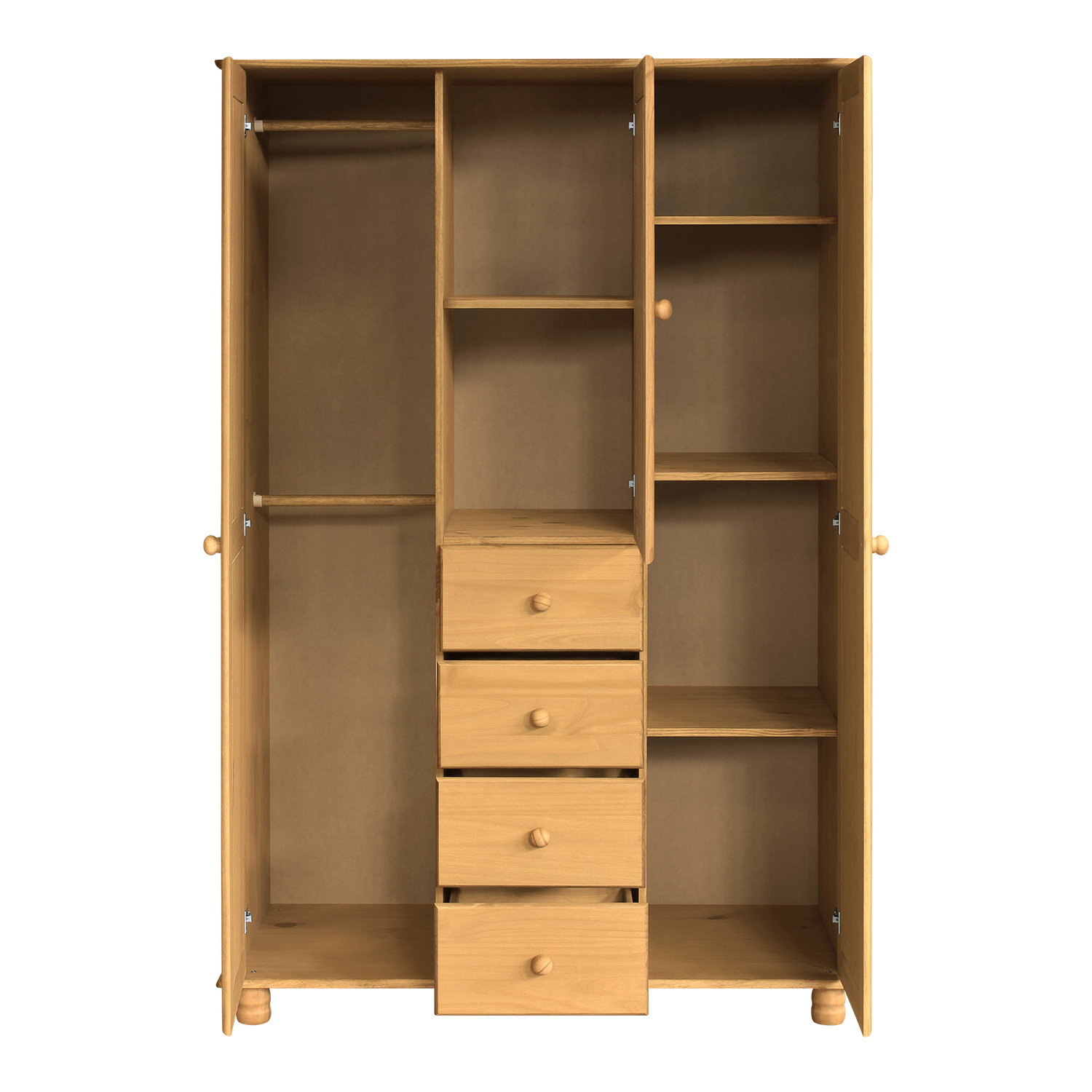 Kod produktu: 4Vmateriał lite drewno sosnowe, wykończenie woskowane szafka z drzwiami i regulowaną półką 4 szerokie szuflady z metalowymi prowadnicami, głębokość szuflady 33,5 cm