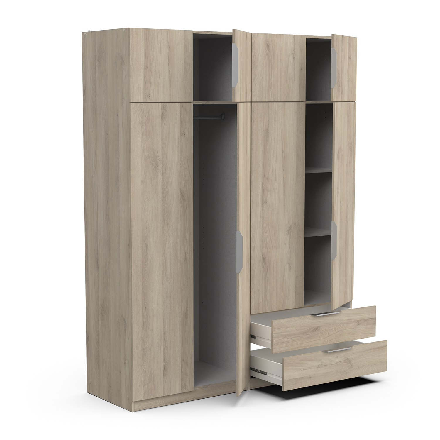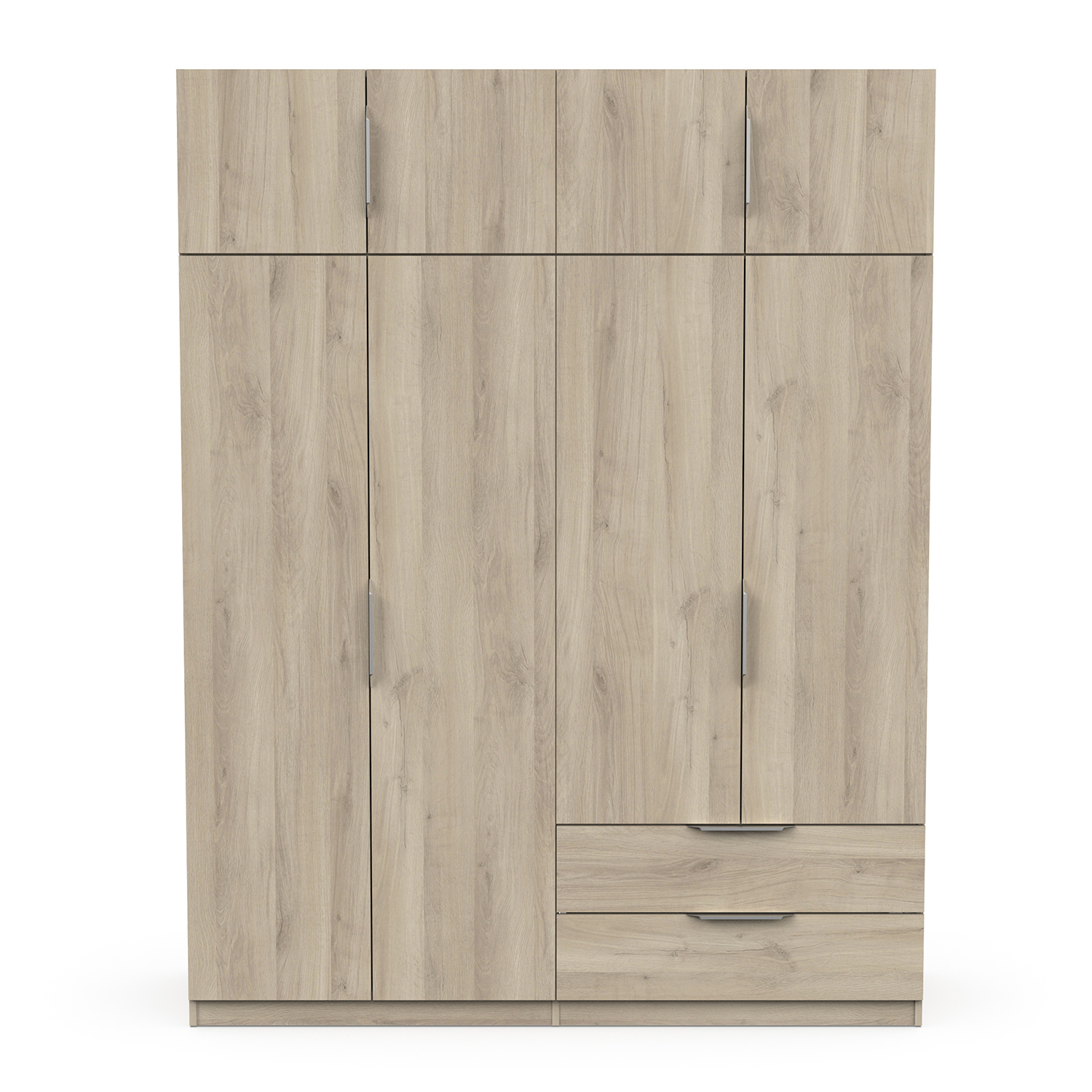 Garderoba dla pary lub wymagającej kobiety? Tylko ośmiodrzwiowa z logicznym podziałem przestrzeni. Szafa 8-drzwiowa TOP w dębie Kronberg oferuje idealną przestrzeń do przechowywania i pięknie wpasuje się do Twojej sypialni. Dąb Kronberg jest bardzo popularny, a szafa w tym wykończeniu będzie wyglądać naprawdę uroczo w Twoim pokoju. Przestrzeń szafy jest wyraźnie podzielona na pół. W jednej połowie powiesisz odzież wierzchnią, koszule i sukienki, a druga połowa posłuży do ułożenia ubrań w stosy. Do przechowywania bielizny, skarpetek i chusteczek do nosa szafa wyposażona jest w dwie szuflady z metalowymi prowadnicami. W górnej części znajdują się dwa schowki. Duża szafa znajdzie zastosowanie w każdym domu, mebel ten stanie się niezbędny zarówno w mieszkaniu z dużą garderobą, jak i w takim z mniejszą sypialnią, ponieważ szafa pomieści naprawdę dużą ilość rzeczy.