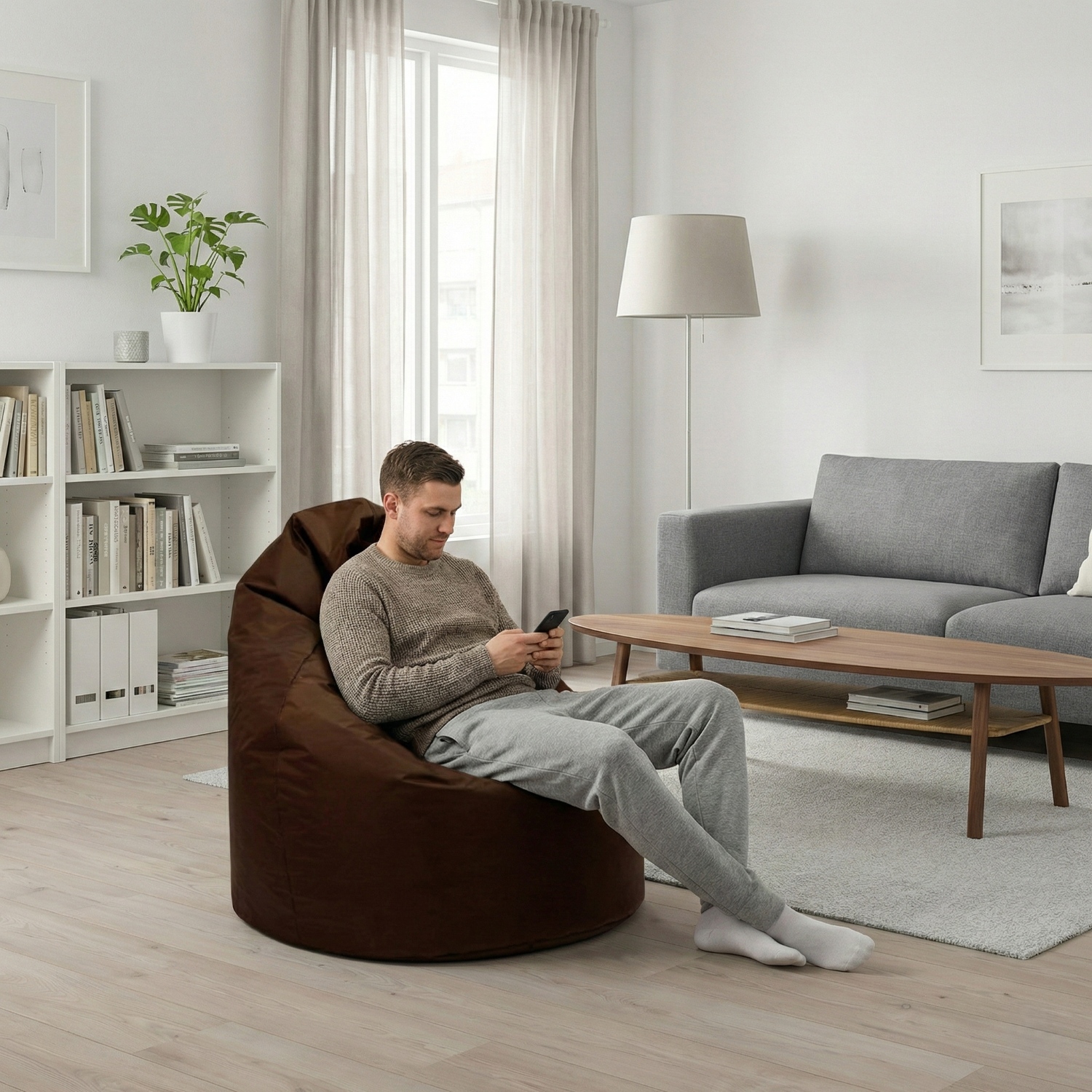 Worek do siedzenia JUMBO V11N zapewni Ci zasłużony relaks i poczucie pełnej swobody. Umieść torbę w swoim salonie, sypialni lub pokoju dziecięcym, aby stworzyć swój prywatny kącik relaksacyjny. Torba jest również odpowiednim dodatkiem do biura, salonu kosmetycznego lub innych komercyjnie wykorzystywanych obszarów. Czasami potrzebujemy zatrzymać szybkie tempo życia i wtulić się w miękką torbę. Pokrowiec na sofę JUMBO w kolorze brązowym pięknie wkomponuje się nie tylko w pokój dziecka, ale także w luksusowo urządzone pomieszczenia, nie zaburzając gwałtownie przestrzeni. Worek wypełniony jest styropianowymi kulkami, które można dowolnie dodawać lub usuwać. Worek do siedzenia zapewni Ci wyjątkową przestrzeń do relaksu, odprężenia i zabawy, zafunduj sobie ten luksus nicnierobienia, być może każdego dnia. Zawartość worka może z czasem zmieniać swoją objętość. Wypełnienie można dokupić i ponownie napełnić.